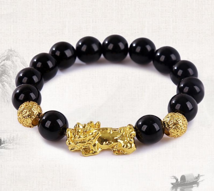 Giới thiệu Vòng tay đá phong thủy nam mang đến may mắn sức khỏe (đá Obsidian với tỳ hưu vàng)