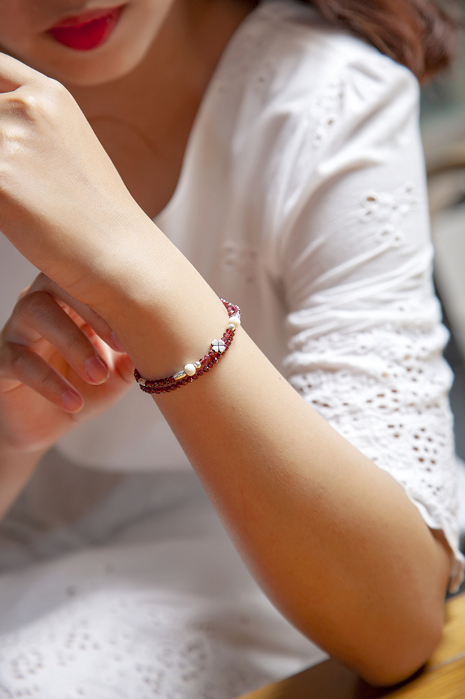 Vòng Tay Phong Thủy Ngọc hồng lựu (Garnet) mix Bạc 925 Cho Mạng Hỏa Thổ, Đá Thiên Nhiên AAAA, Món Qùa Trang Sức Ý nghĩa May Mắn Tài Lộc VT080