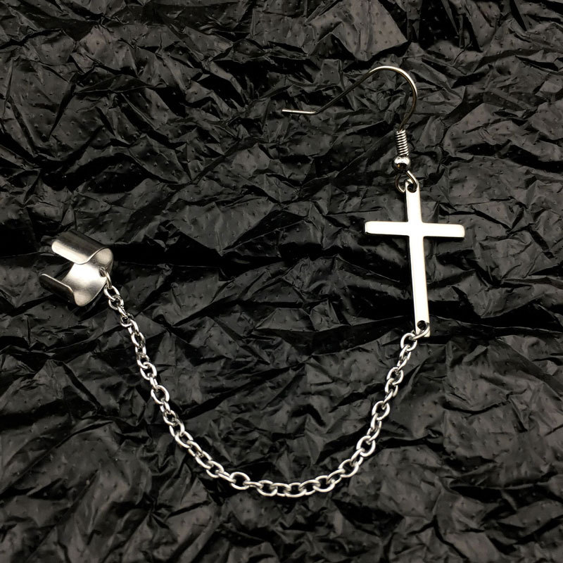 Bông tai được gia công thủ công từ Titan nguyên chất, sáng bóng, không han, không gỉ, an toàn cho da. Sản phẩm được thiết kế một đầu xỏ lỗ một đầu kẹp vành. Chữ thập thả xuông được nối với chuỗi xích titan dáng dây chuyền. Ý tưởng thiết kế độc lạ, mạnh mẽ phù hợp với các bạn trẻ ưa chuộng style táo bạo, phá cách. Dành cho mọi giới tính. Phù hợp với trang phục trẻ trung, năng động. Bền hơn khi ít tiếp xúc với hóa chất. Sản phẩm bán một chiếc.