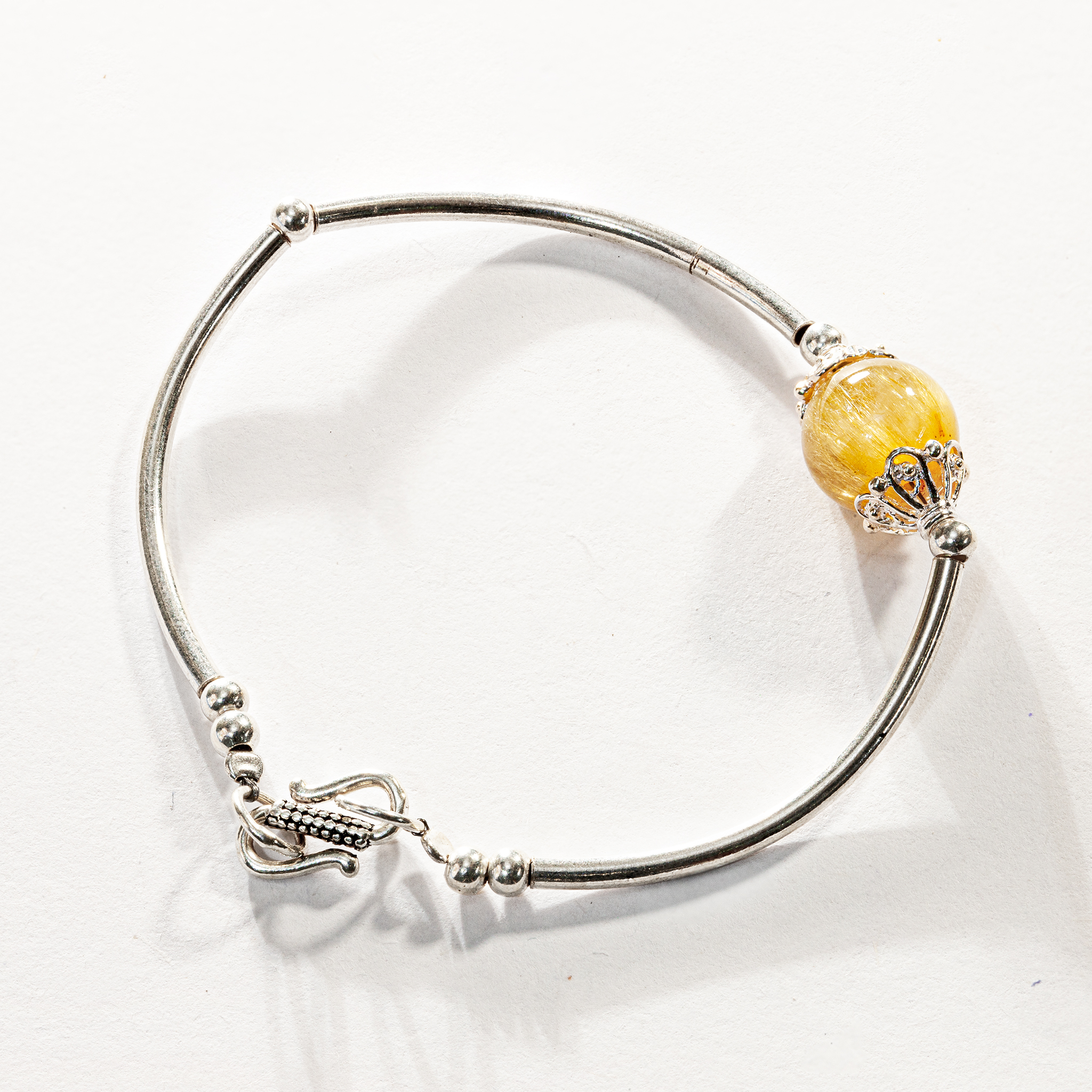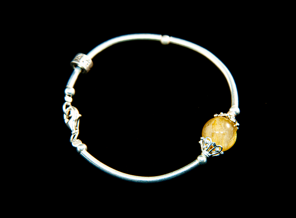 Giới thiệu Vòng tay đá phong thủy Thạch anh tóc vàng mix charm bạc lục tự chú VK007