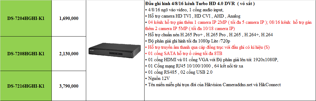 Đầu ghi hình 16 kênh DS-7116HGHI-F1 vỏ nhựa đã dừng sản xuất được thay thế bằng mã đầu ghi vỏ sắt DS-7216HGHI-K1 ( hoặc DS-7216HGHI-M1 )