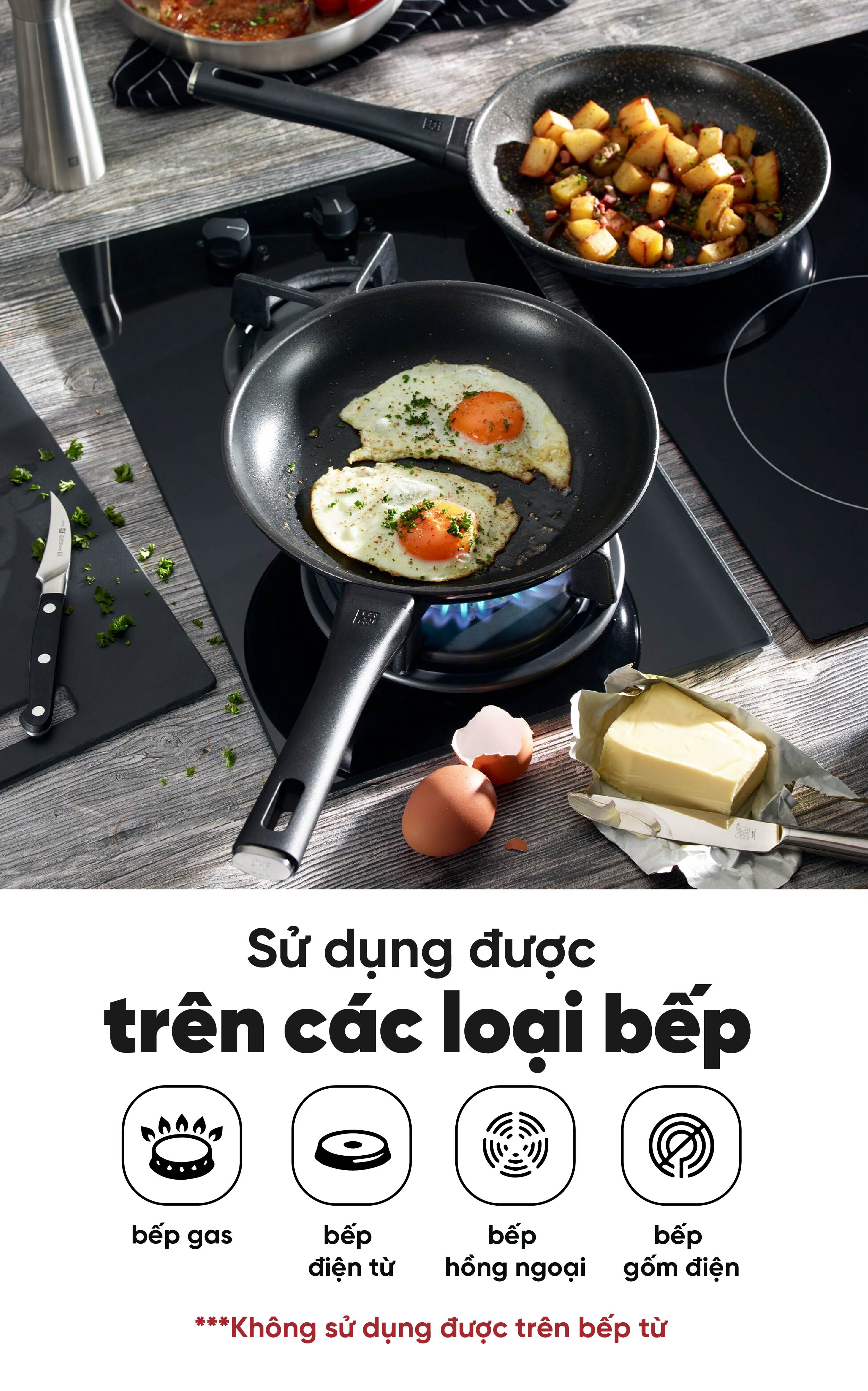 Chảo sử dụng được trên tất cả các loại bếp,( trừ bếp từ)