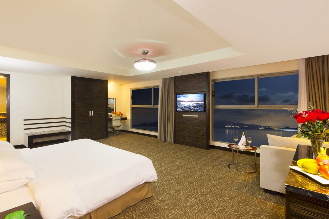 Hệ thống các phòng nghỉ với nội thất cao cấp, tiện nghi đẳng cấp 5 sao, trang thiết bị đầy đủ như phòng tắm rộng rãi với bồn tắm riêng, buồng tắm đứng, tivi màn hình phẳng với các kênh truyền hình nhiều ngôn ngữ thông dụng, internet cable và không dây trong phòng, quầy minibar,… Tất cả các phòng đều có cửa sổ nhìn thẳng ra thành phố hoặc biển Nha Trang. Từ nơi cao nhất thành phố này bạn có thể quan sát các thắng cảnh nổi tiếng như Hòn Mun, Hòn Một, Hòn Tằm, Đảo Ngọc,…