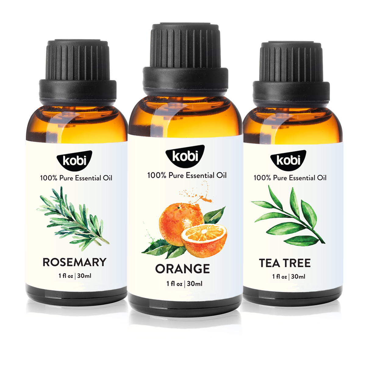 Combo 3 Tinh Dầu Xông Phòng Kobi: Tinh Dầu Hương Thảo (30ml) + Tinh Dầu Cam Ngọt (30ml) + Tinh Dầu Tràm Trà (30ml) - Tinh Dầu Thiên Nhiên Nguyên Chất, Tốt Cho Bé Sơ Sinh, Giúp Giữ Ấm Cơ Thể, Phòng Ngừa Bệnh Hô Hấp Hiệu Quả