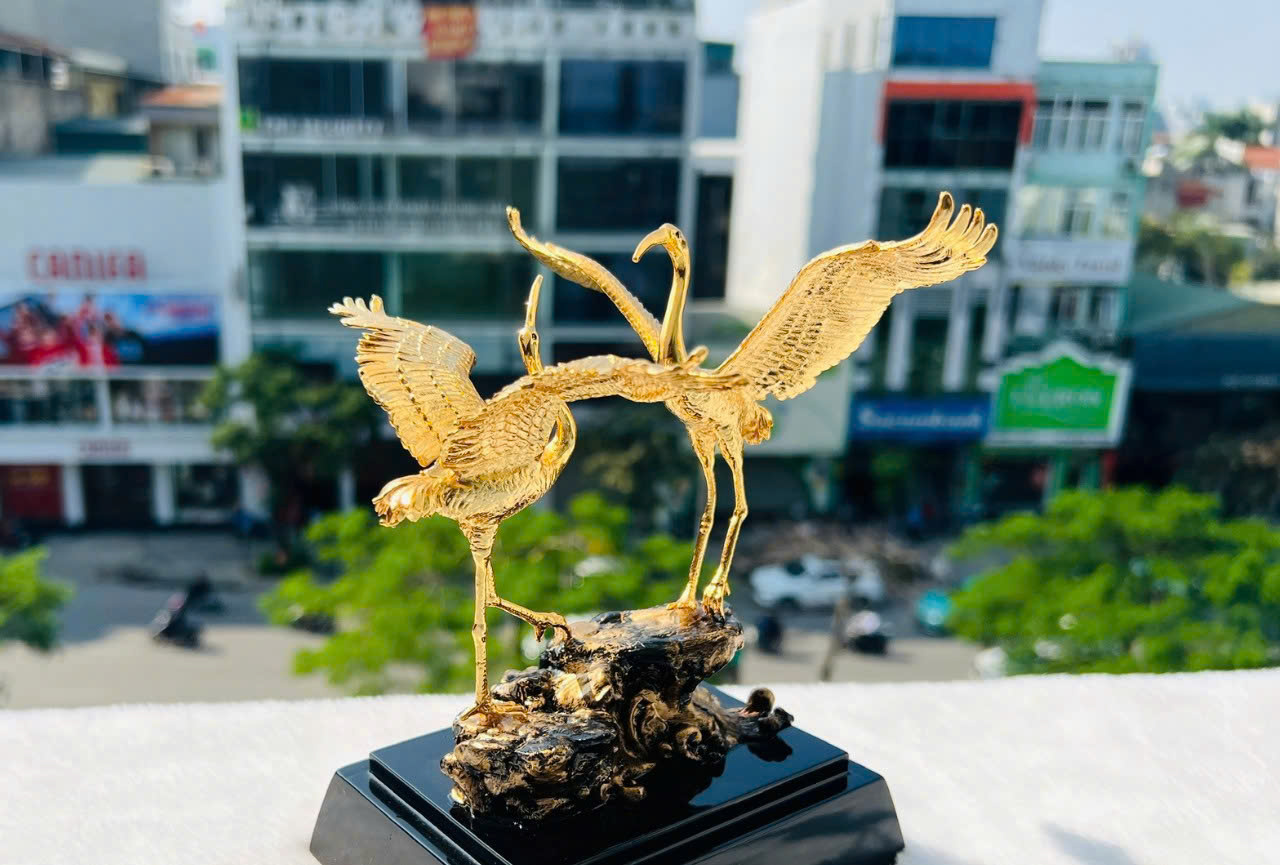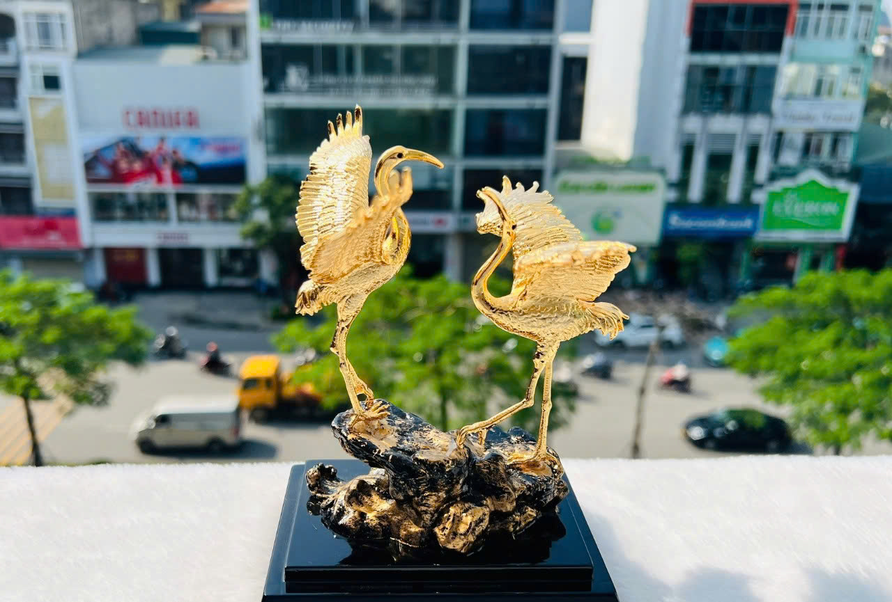 Tượng đôi hạc do Golden Gift Việt Nam chế tác được mạ vàng thật bằng phương pháp điện phân